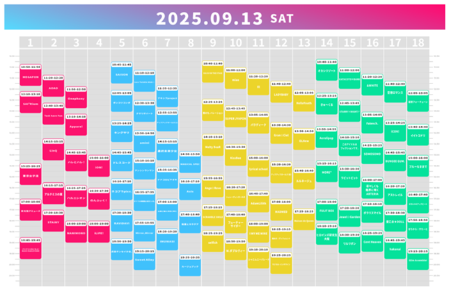 &WHITE / 踊れ︕神⾵ / KAIJU ON THE STAGE / きゅ〜くる / Glim Assembler / さよならステイチューン / zanka / JINKS / XINXIN / すてねこキャッツ / すべての瞬間は君だった。 / Chalca / ティラミス / 点染テンセイ少⼥。 / トウトイナ。 / hakanai / PLATINUM Princess研究⽣ / ベンジャス︕ / MyDresscode / my fav / Ma'Scar'Piece / Melty BeaR / LarmeR / ルルネージュ / ワガママなラストノート