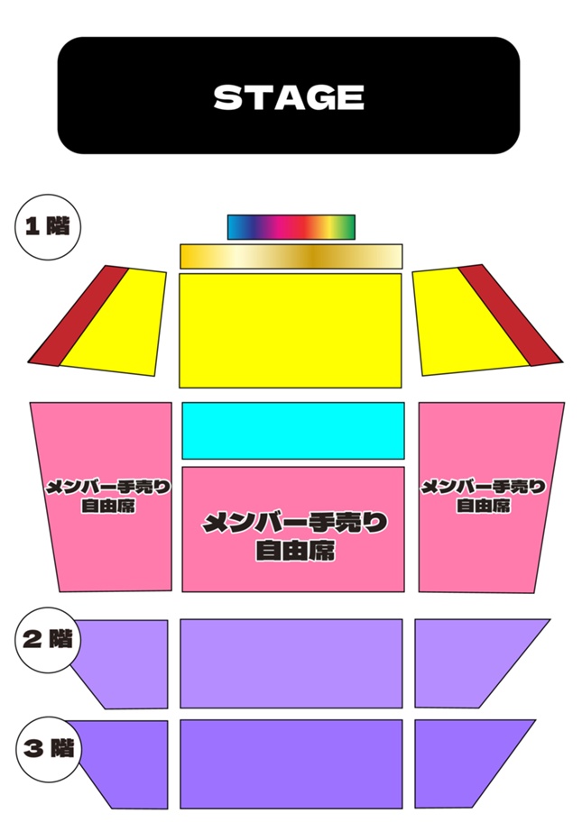 手売りチケットの座席エリアは下記、図面をご参考ください。