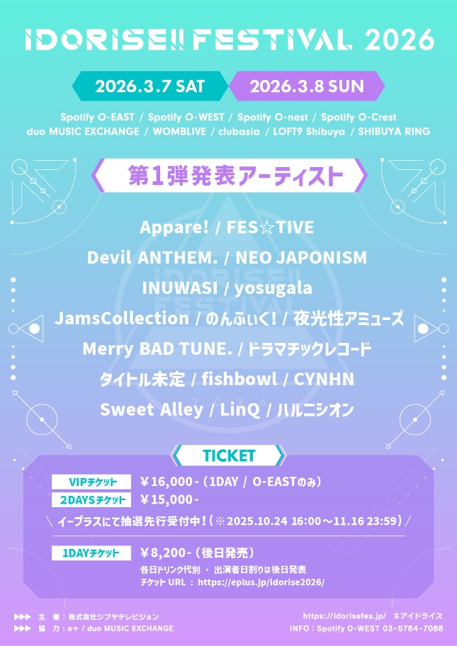 ・VIPチケット:¥16,000(VIP観覧エリアはO-EASTのみ)