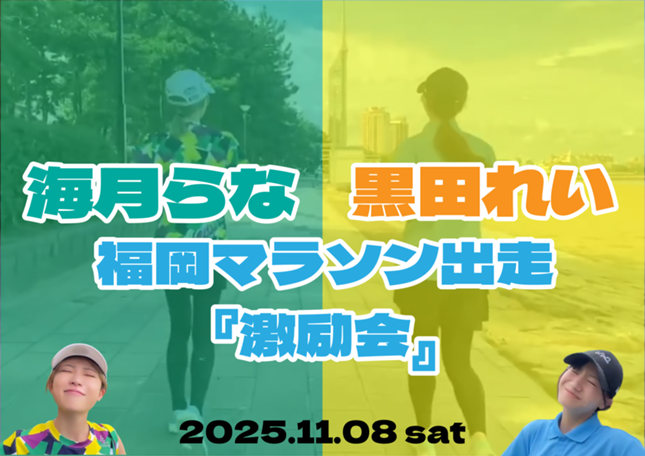 11月9日(日)福岡で開催される福岡マラソン2025のゲストランナーとして出場する海月らな、黒田れいをみんなで盛り上げ、完走をみんなで見届けようという事で『激励会』を開催致します!