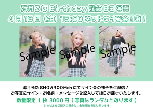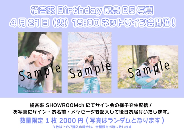 4月21日(火)『SHOWROOM個人配信 橘杏來BIRTHDAYネットサイン会』開催