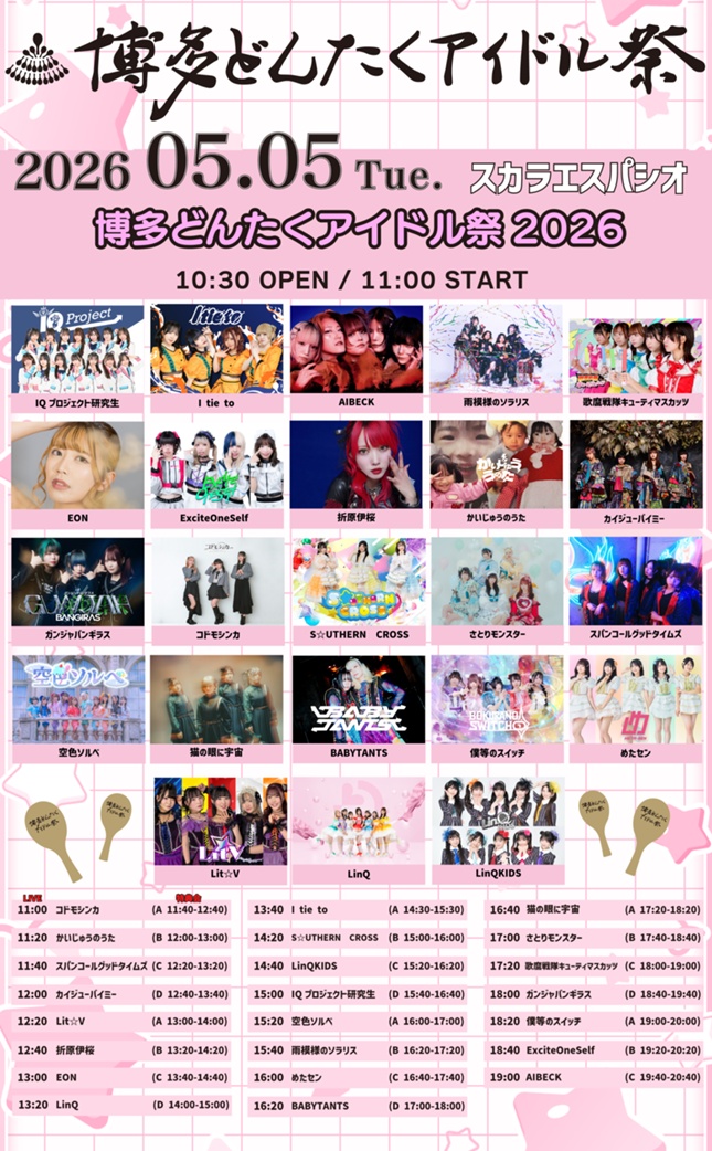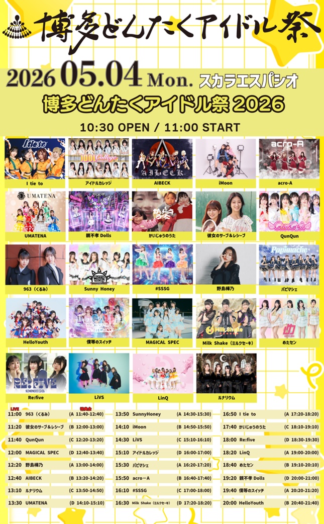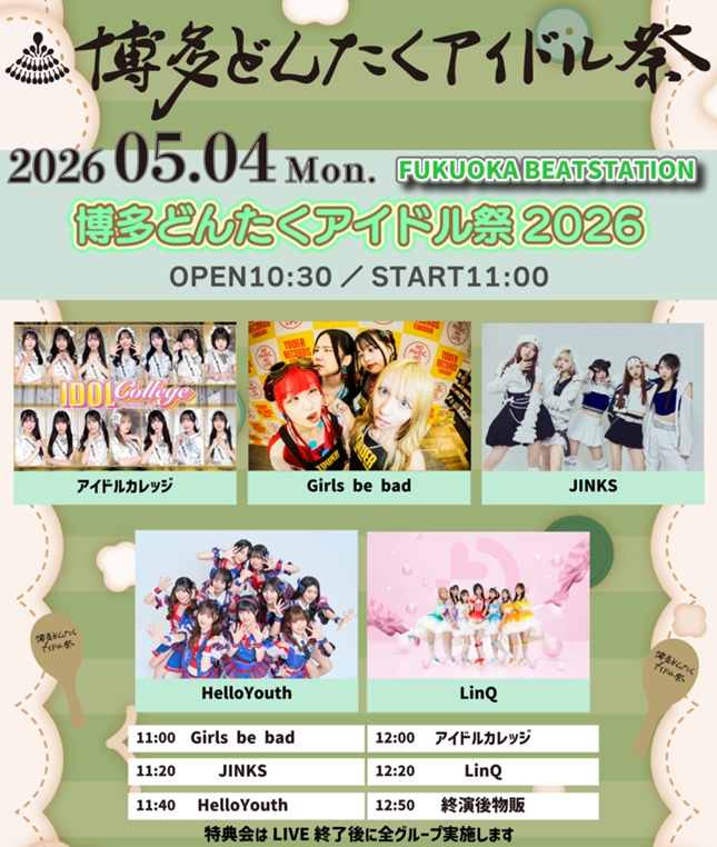 5月3日(日)〜5月6日(水)に開催の博多どんたくアイドル祭2026にて、